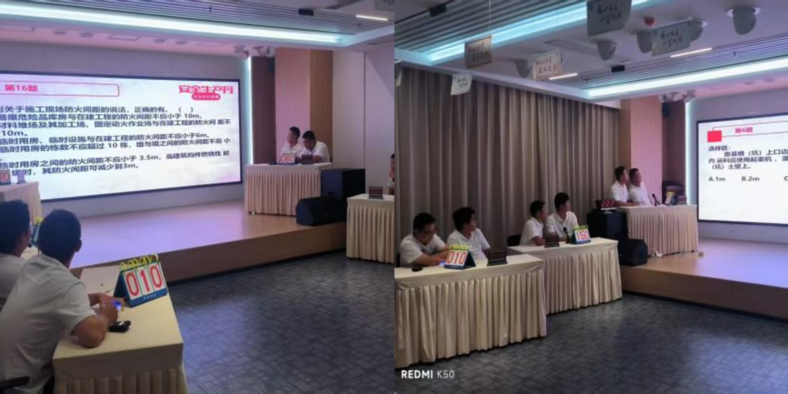 此次競(jìng)賽以 “人人講安全、個(gè)個(gè)會(huì)應(yīng)急 — 查找身邊安全隱患” 為主題,競(jìng)賽題目緊密結(jié)合建筑施工領(lǐng)域安全生產(chǎn)實(shí)際情況精心設(shè)計(jì)。競(jìng)賽內(nèi)容涵蓋了《安全生產(chǎn)法》、建筑施工安全規(guī)范、應(yīng)急救援知識(shí)以及典型事故案例分析等關(guān)鍵要點(diǎn),全面考查參賽選手的安全知識(shí)儲(chǔ)備與實(shí)際應(yīng)用能力。競(jìng)賽活動(dòng)設(shè)置個(gè)人必答題、小組必答、搶答題等環(huán)節(jié),充分調(diào)動(dòng)了選手們的積極性與參與度;現(xiàn)場(chǎng)氣氛緊張而熱烈,充分展現(xiàn)了建筑施工人員良好的精神風(fēng)貌和專業(yè)素養(yǎng)。